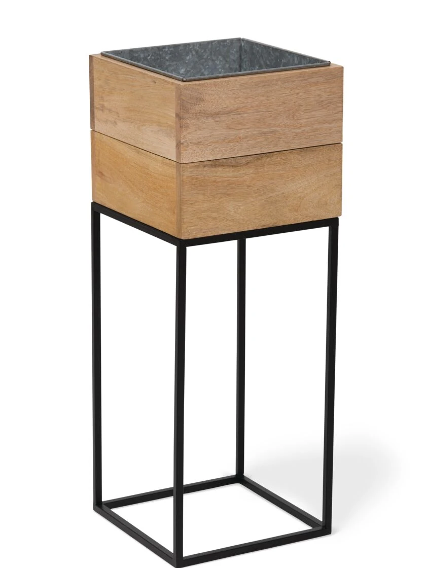 Part of a larger family of planters, this gorgeous square mango wood planter has sleek, modern styling, galvanized liners, and plugs for drainage. No assembly needed — just unbox and plant it up! Pair it with our elevated or two tier planter for a cohesive look.